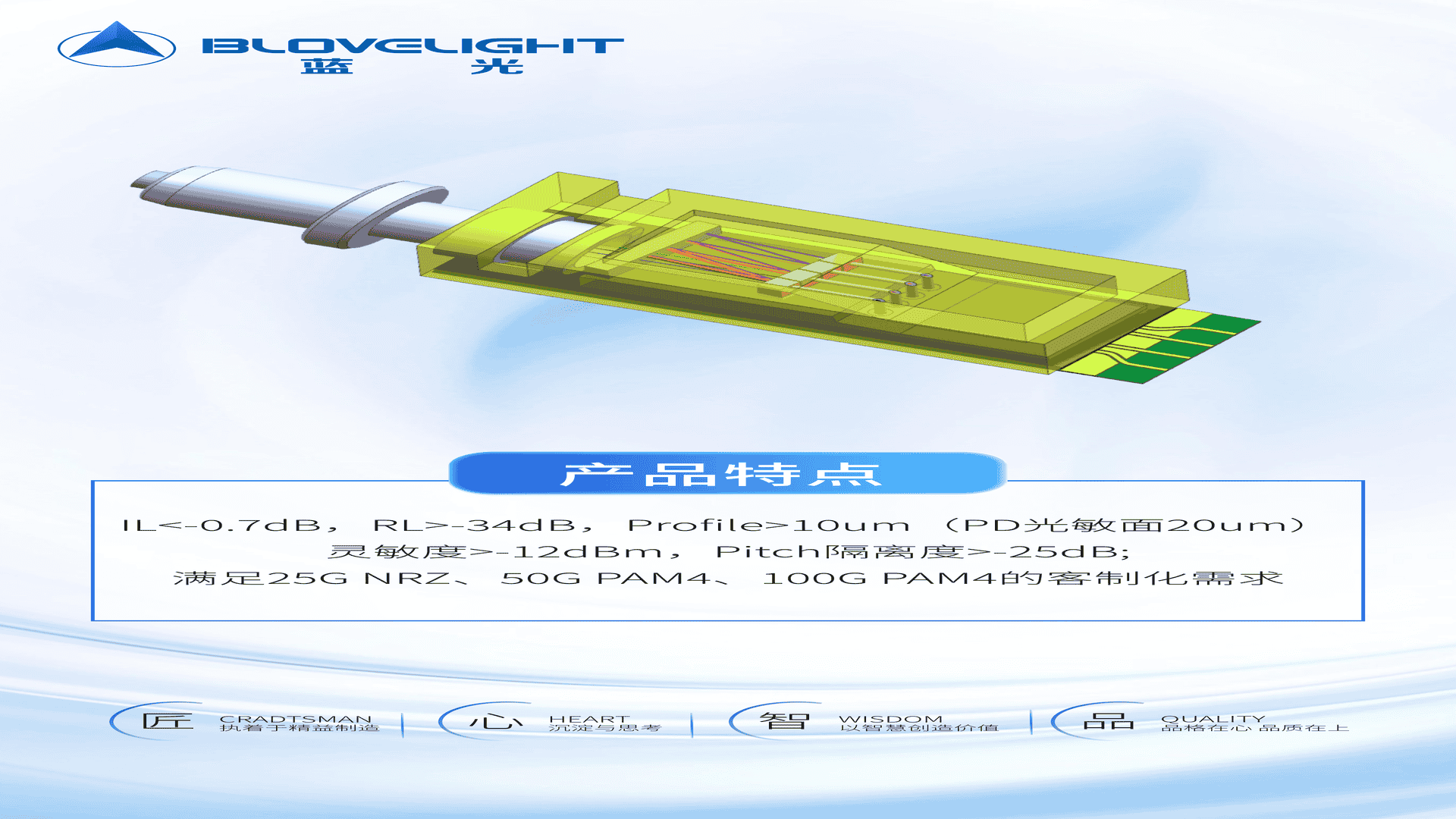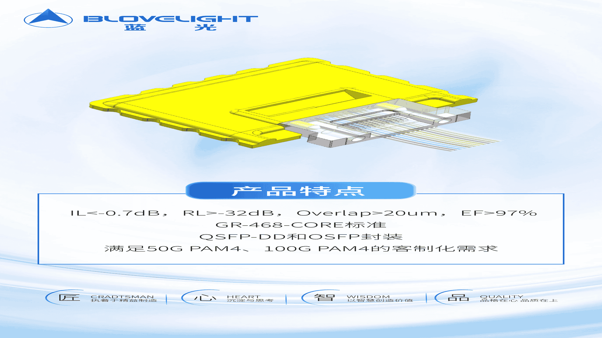 藍光智能自2008年來一直致力于深耕塑膠化光學(xué)集成領(lǐng)域,緊跟市場發(fā)展,不斷推動新產(chǎn)品的迭代升級。在未來,藍光智能將持續(xù)投入研發(fā),為客戶探索出更多的“芯片到光纖”塑膠化光學(xué)集成的可能性,助力高速光連接的發(fā)展迭代。
