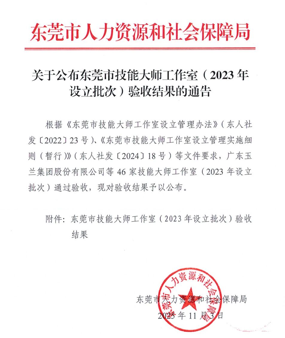 11 月 3 日,東莞市人力資源和社會(huì)保障局正式下發(fā)《關(guān)于公布東莞市技能大師工作室 (2023 年設(shè)立批次) 驗(yàn)收結(jié)果的通告》,廣東藍(lán)光智能科技有限公司技能大師工作室憑借扎實(shí)的建設(shè)成果與突出的綜合實(shí)力,成功榮獲 “A 類最高等級(jí)” 評(píng)定。